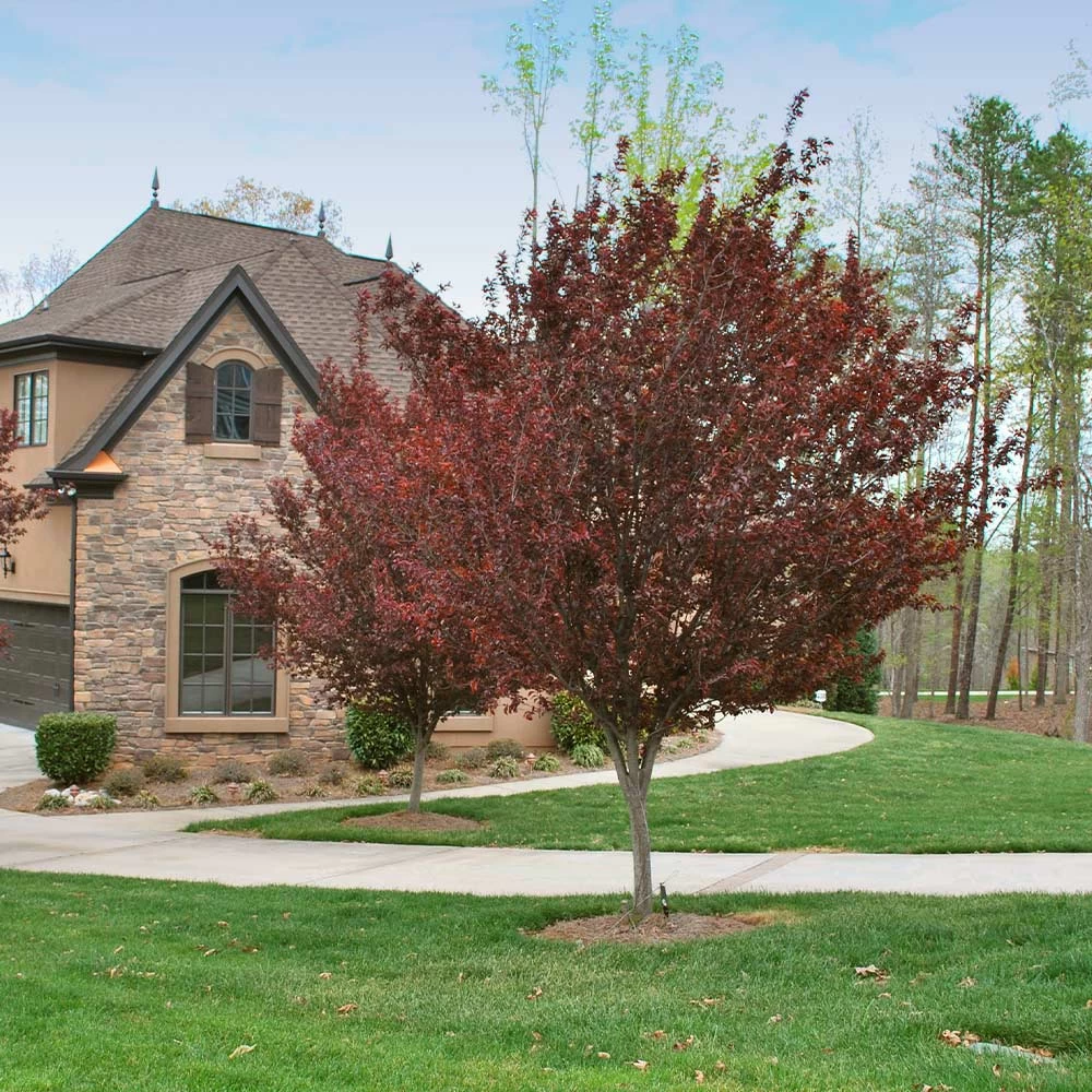 And by growing to a manageable mature height, the Krauter Vesuvius Plum can fit anywhere, even in yards with limited space. Their oval-shaped canopies are perfect for gracing driveways, borders and beyond, adding shade to hot areas and color to bare corners.
